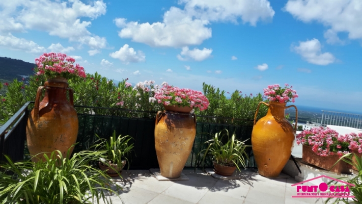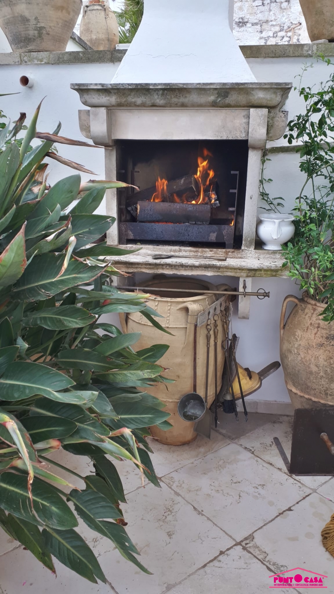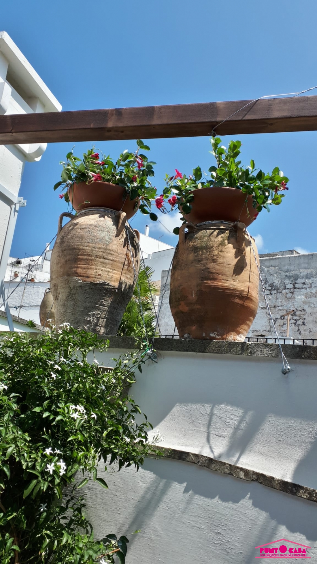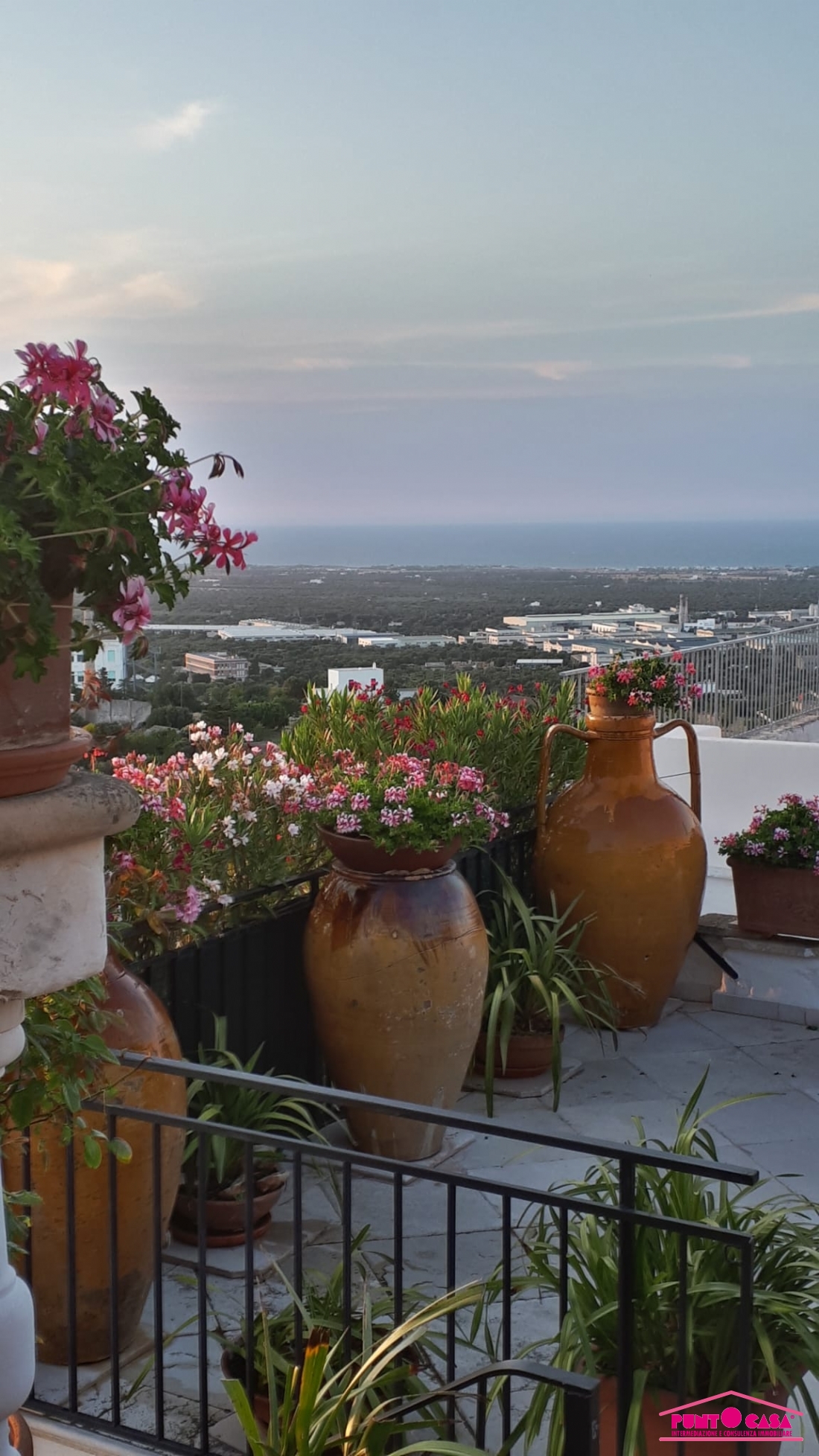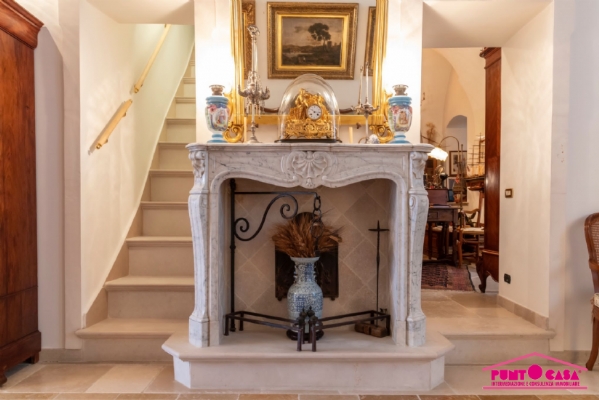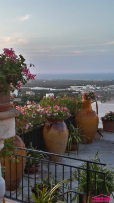 La proprietà, dotata di doppio ingresso indipendente, si compone di un accogliente salotto con camino in pietra, due ampie camere da letto, un funzionale studiolo e tre bagni. Vero fiore all'occhiello è la zona living superiore: qui troviamo una seconda cucina che serve direttamente i meravigliosi terrazzi panoramici. Da qui, la vista è un'emozione continua: uno scorcio unico che abbraccia il bianco del centro storico, il verde dei colli di Ostuni e l'azzurro intenso dell'Adriatico.
