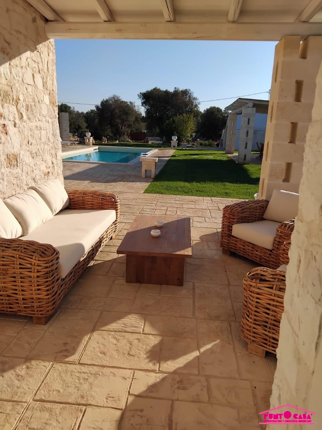 Spazi esterni sono caratterizzati da7000mq di terreno con un ampio spazio verde, piscina e gazebo un angolo immerso nella natura.