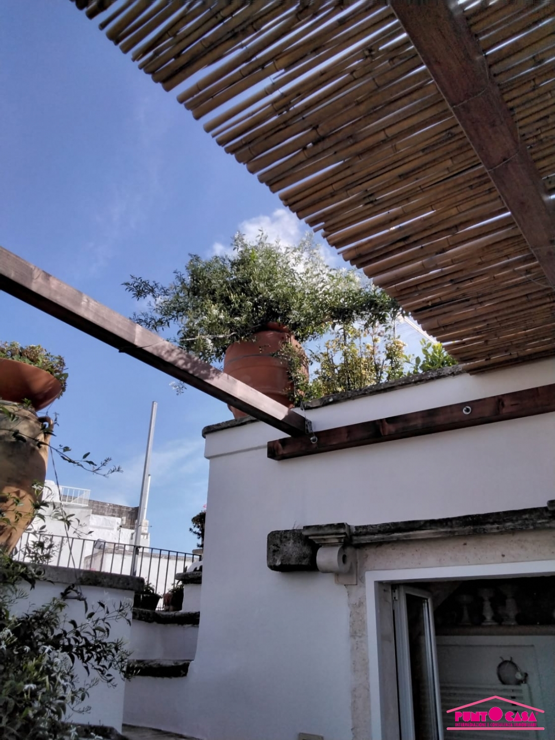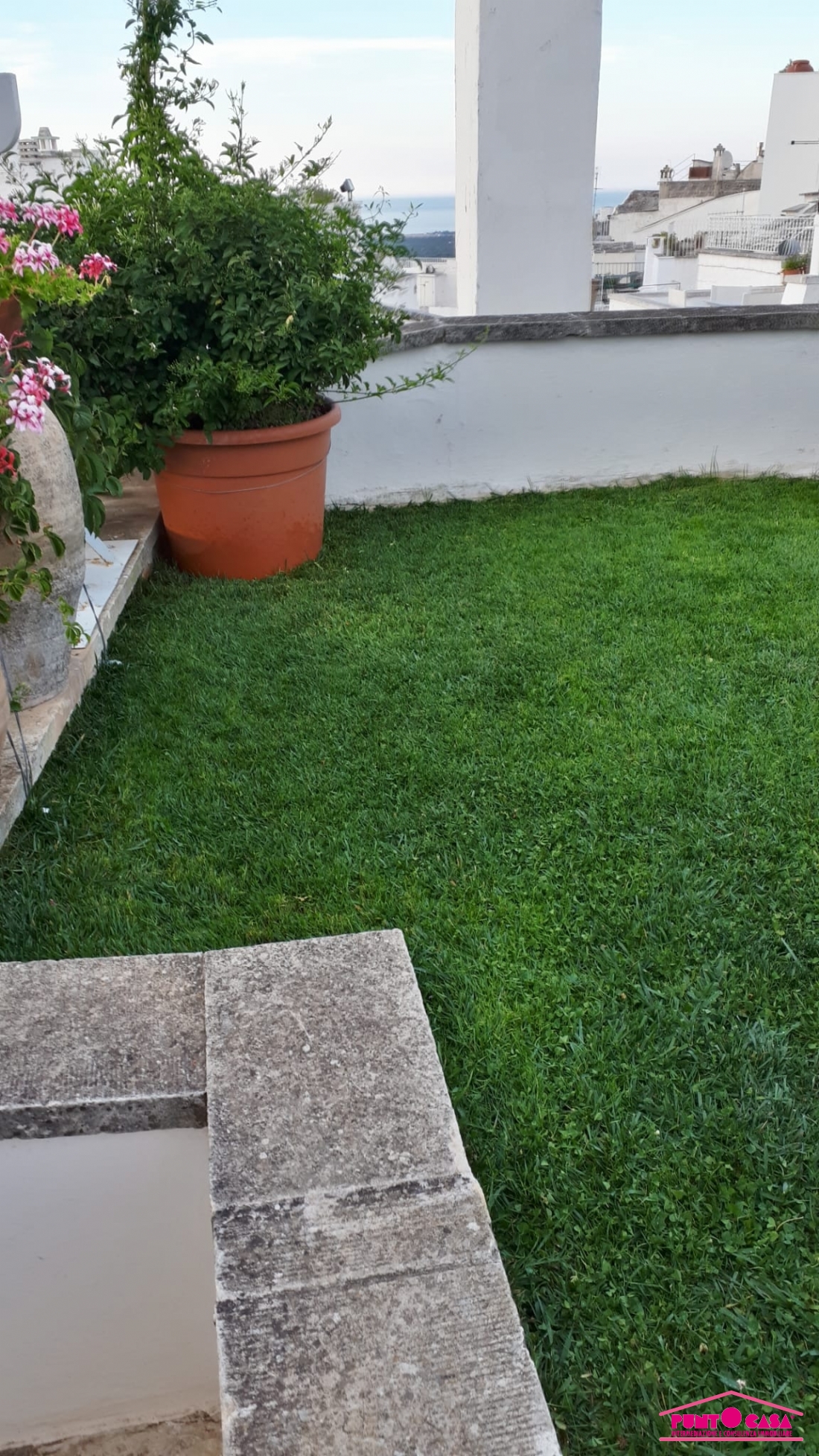 La proprietà, dotata di doppio ingresso indipendente, si compone di un accogliente salotto con camino in pietra, due ampie camere da letto, un funzionale studiolo e tre bagni. Vero fiore all'occhiello è la zona living superiore: qui troviamo una seconda cucina che serve direttamente i meravigliosi terrazzi panoramici. Da qui, la vista è un'emozione continua: uno scorcio unico che abbraccia il bianco del centro storico, il verde dei colli di Ostuni e l'azzurro intenso dell'Adriatico.